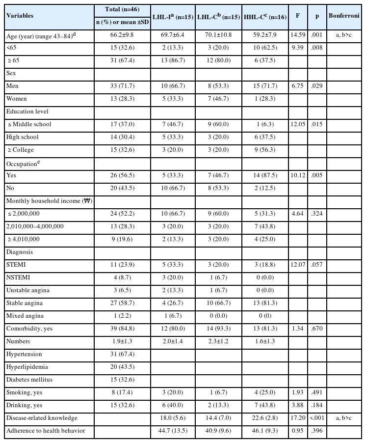 Disease-related knowledge was assessed using the Knowledge of Disease Questionnaire for CAD patients developed by Kim and Park [