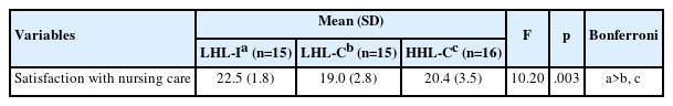 Table 4.Differences in Satisfaction with Nursing Care
