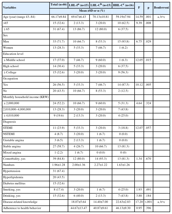 Disease-related knowledge was assessed using the Knowledge of Disease Questionnaire for CAD patients developed by Kim and Park [