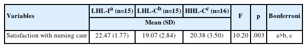 Table 4.Differences in Satisfaction with Nursing Care